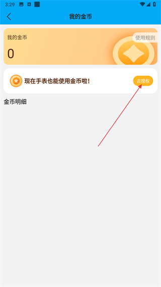 3、在我的金币页面,点击去授权按钮,跳转至授权金币页面。