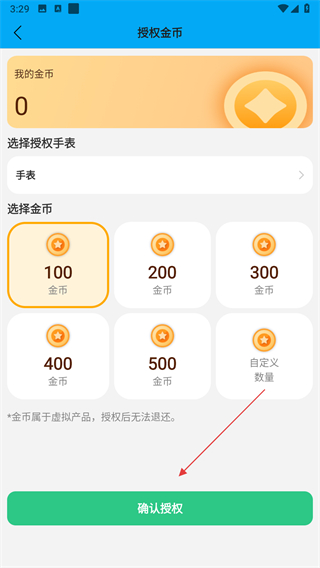 4、选择需要授权的金币数量,最后点击确认授权完成操作。