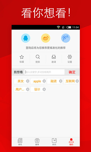 4、如果对推荐的内容不满意,您还可以定义“我想看”关键词,微观帮你找,推送给您看。