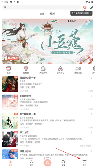 1、启动猫耳fm的应用,在发现的页面内点击右下我的按钮。