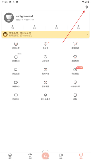 2、进入我的页面内,点击右上角齿轮状的设置图标。