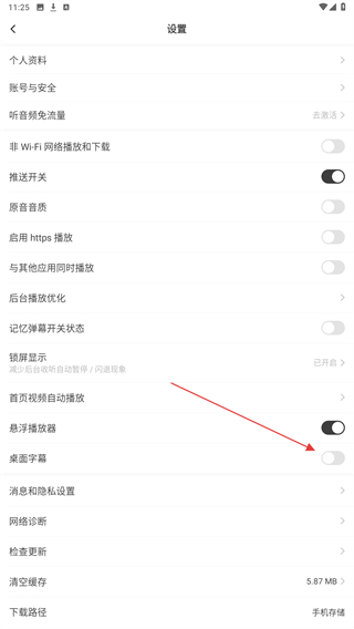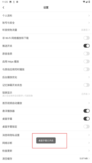 3、进入设置的界面内,找到桌面字幕并开启右侧的开关按钮。