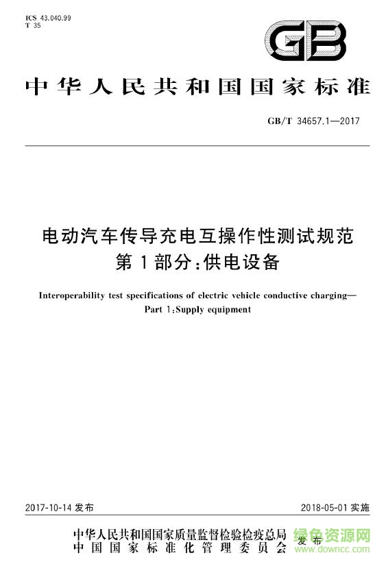中文标准名称:电动汽车传导充电互操作性测试规范 第1部分:供电设备
