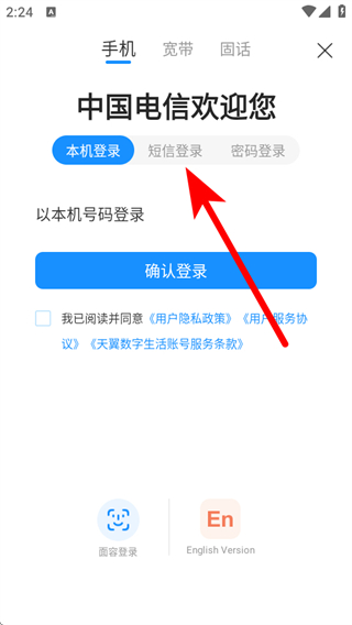 3、在登录选择页面,我们这里可以选择使用短信登录的方式。