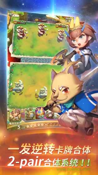 特定卡片单位可以在战场上实时合体变身,召唤强力的新单位。
