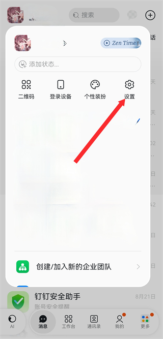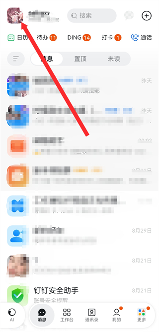 1、打开钉钉APP,点击左上角的个人头像,进入个人功能页面。
