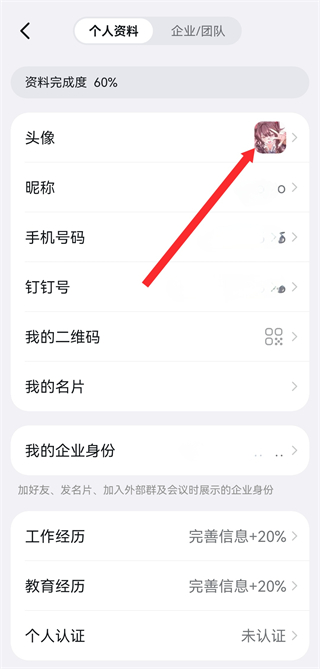 4、在个人资料页面,点击头像选项,后续选择新头像并确认更换。
