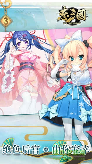 恋三国官网游戏是一款全新的人气娘化三国题材卡牌手游。游戏虽以三国历史故事作为背景设定,但却将玩家所熟知的各个英雄武将全部娘化,每一名武将在恋三国中,都是造型甜美可爱的软萌妹子,喜欢此类三国手游的玩家,快来绿色资源网下载吧。