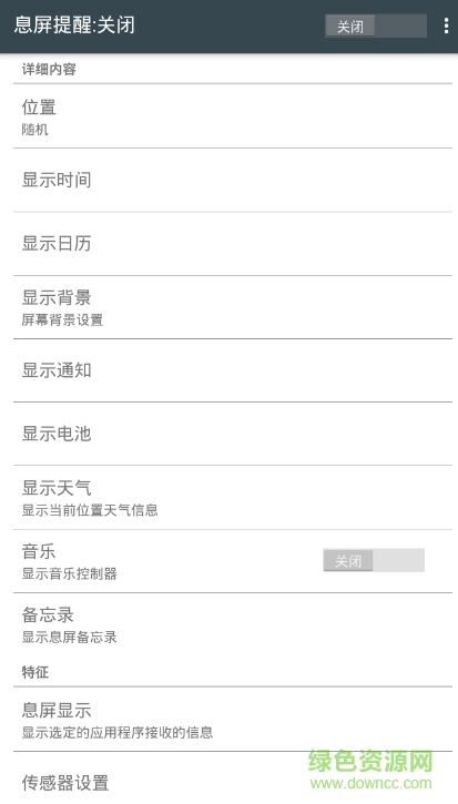3.在“熄屏提醒”界面的顶部,你可以选择打开或是关闭这个功能。