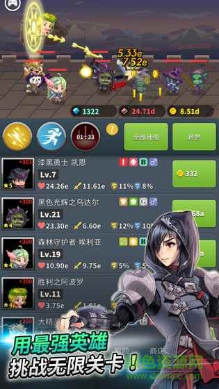 可以使英雄和关卡无限成长的放置类RPG最终版!