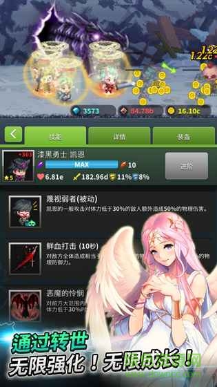 关卡变得越来越难,今天也进行转世,然后用符文石进行强化!怪物一成不变,而我的英雄却变得越来越强!关卡的成长则变得更简单!英雄每次重生就会被无限强化,享受无限成长的乐趣!