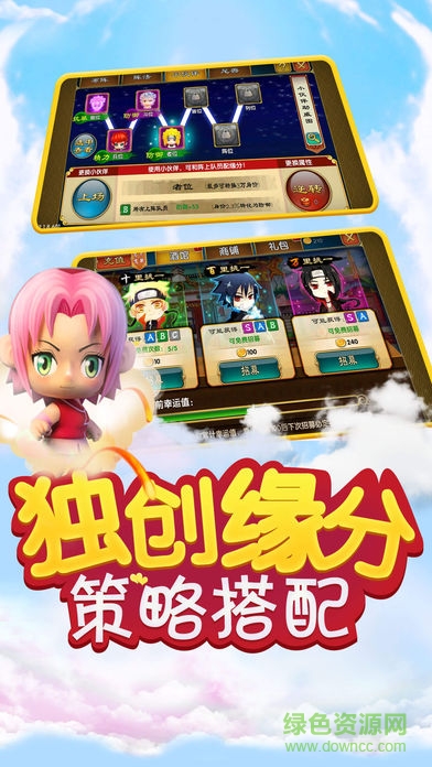 忍者小英雄是一款超好玩的日式风策略卡牌手游,游戏人物设计精美可爱,提供了丰富的角色供玩家选择,玩家可通过卡牌收集来提升战斗力,玩法爽快刺激,喜欢的朋友欢迎来绿色资源网下载!
