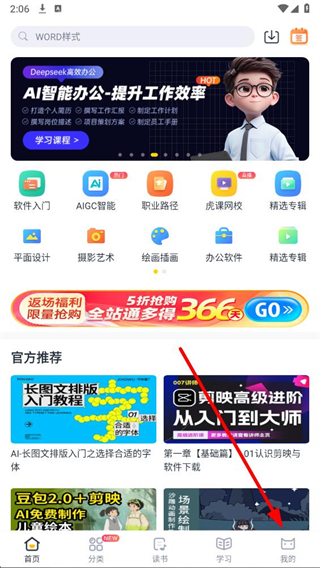 1、在虎课首页,点击右下角我的,进入个人页面。