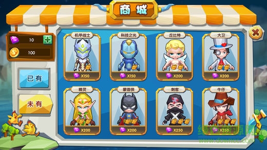 3.商店中有多种像素人偶风格的角色供您选择,角色的加入并不会造成游戏失衡,这是弓箭大战又一个突出的地方。