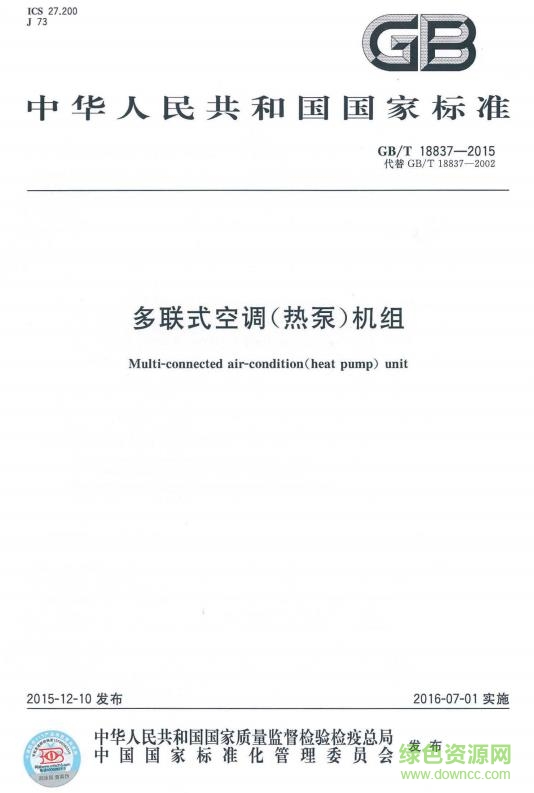 gbt18837 2015微盘这本标准中为大家详细的进行了最新的多联式空调(热泵)机组制冷标准,能够让一众企业进行空调制冷机组制作与设计的过程中按照相应的型号,要求,存储方式等进行严格的规范生产,快来绿色资源网下载吧!