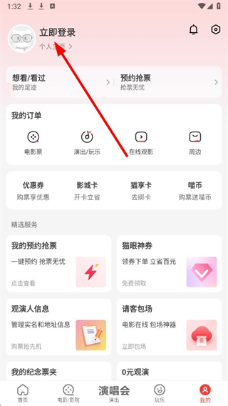 2、在我的页面中,点击立即登录区域,进入账号登录的操作界面。
