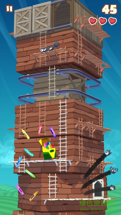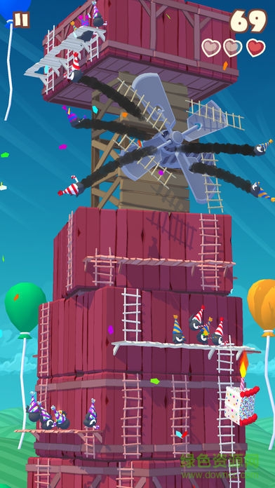 滑动塔楼方块来排好梯子去爬上更高!通过断开你下面的梯子阻止邪恶的Goonswarm,并使用特殊的塔块与风扇叶片,拳击手套,自动扶梯和更多东西把Goonswarm打飞!有超过25个的古怪人物有待解锁,每日都有礼物赠送,和更多。