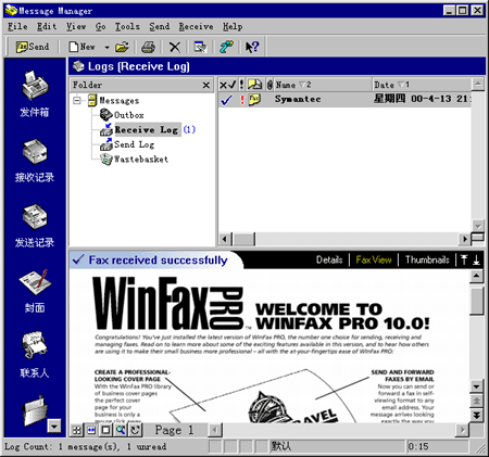 winfax pro 10.0 full免费版是由赛门铁克公司推出的一款商务办公传真软件。这款软件操作简单,功能强大,不同于普通的传真软件只能接收、发送传真,它还能将文件以电子邮件的方式,发送至其他传真机。