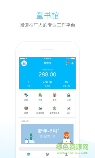 1. 推广人在手机上可实时掌握童书馆订单、访客、阅读家庭增长以及销售额和收入的变化趋势;