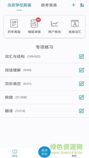 统考学位英语主要为成人本科学士学位提供的英语学习app,想轻松过考试关,还是需要针对化练习,英语不管是针对于考试还是生活运用,都是非常值得去好好学习的,针对于用户的知识薄弱环节进行专项练习,还收录了近十年的高频词汇以及真题,感兴趣的朋友就来绿色资源网下载安装吧