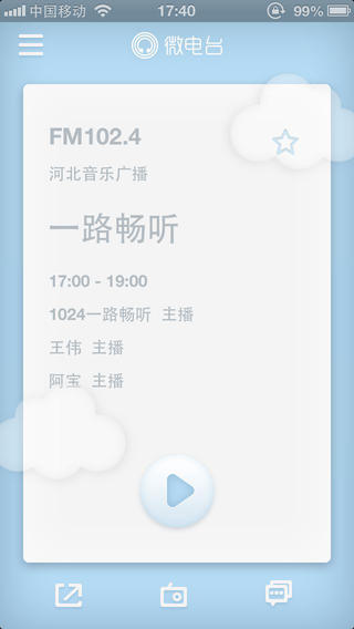支持微博互动,和微博上的好友分享自己的收听心得;