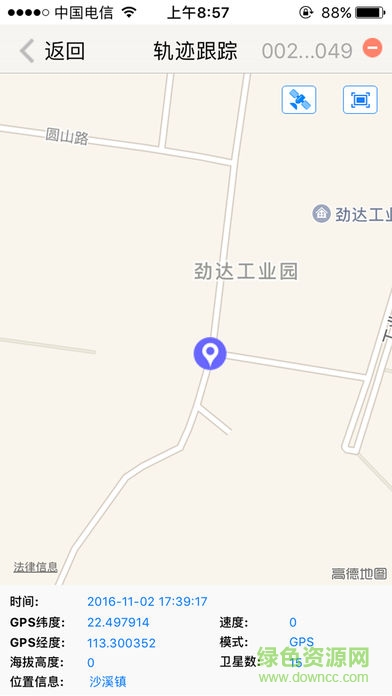 查看当前监控设备的实时轨迹,使用该功能,设备必须先开通数据上传功能,设备在运动,在会在地图上实时的画出行驶路线。