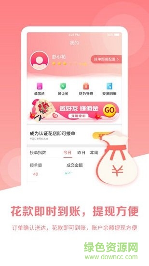 彭花儿是一款非常不错的手机鲜花蛋糕预订服务应用软件,彭花儿app为广大商户提供了订单派发的功能,线上店铺和线下门店都能够在线派单,让你全国都能够预订鲜花蛋糕。