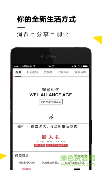 微盟时代app是一款大型电商平台,打造微商联盟,为广大创业者提供社交、直播等交互平台,让产品营销和推广更加高效,绿色资源网诚意推荐!