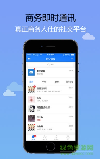 使用者可以和商务伙伴在众享惠通里在线沟通。