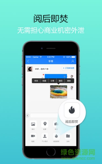 目前支持机密内容阅后即焚、开放式临时对话、商务群组管理等特色应用。