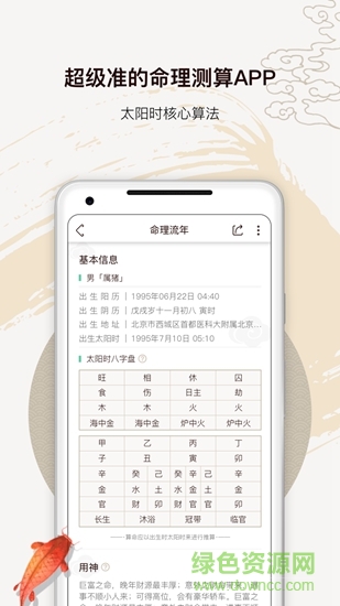 过生辰八字组合出你的先天命格,详细的命格解说,配合阴阳五行,精准分析你未来的发展趋势,让你把握大运之年,提升事业,爱情,健康,财运等运势,做最专业、最详细、功能最全的八字命理应用。