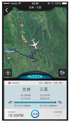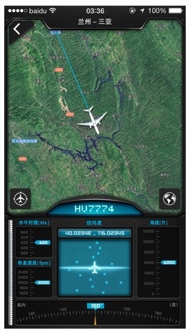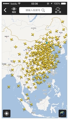2、您可以通过百度天眼,随时随地看到全中国在途飞机的实时飞行动态、航班详情,享受和塔台工作人员一样的检测飞机的体验;