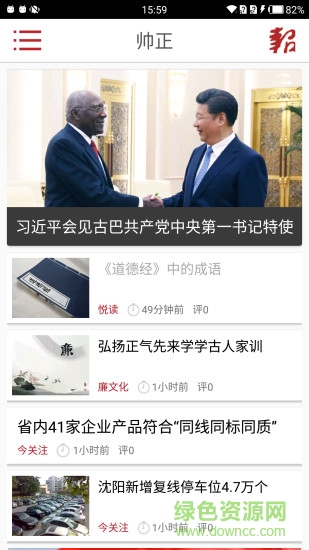 帅正新闻app是针对沈阳公务员提供的一款新闻阅读平台,丰富及时的新闻资讯全面覆盖了政情、廉政、党课、城事等,支持在线交流功能,还提供了沈阳日报电子版,需要的朋友快来绿色资源网下载吧!