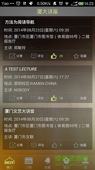 同时,厦大讲座网也发布厦门市区的讲座、音乐会、沙龙等资讯!(包括市立图书馆、厦门筼筜书院等)