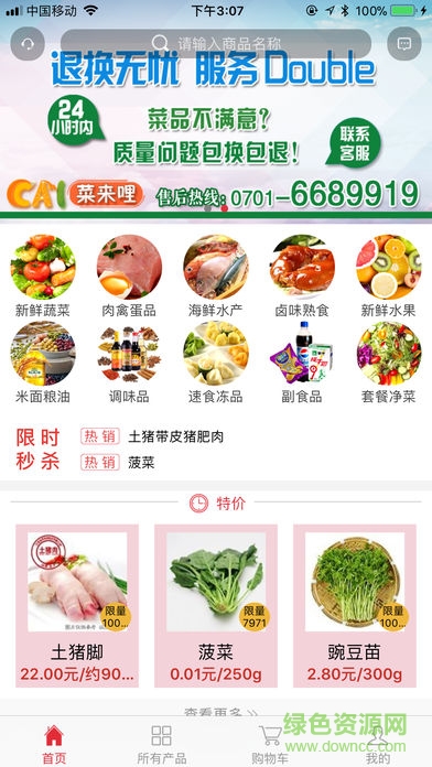 菜来哩app是服务于江西地区的一款掌上买菜软件,使用app用户可以在线选购瓜果蔬菜,所有商品均为绿色健康有保障,每日不断推出秒杀及促销活动,在线下单当日即可快速送货上门,需要的朋友欢迎来绿色资源网下载!