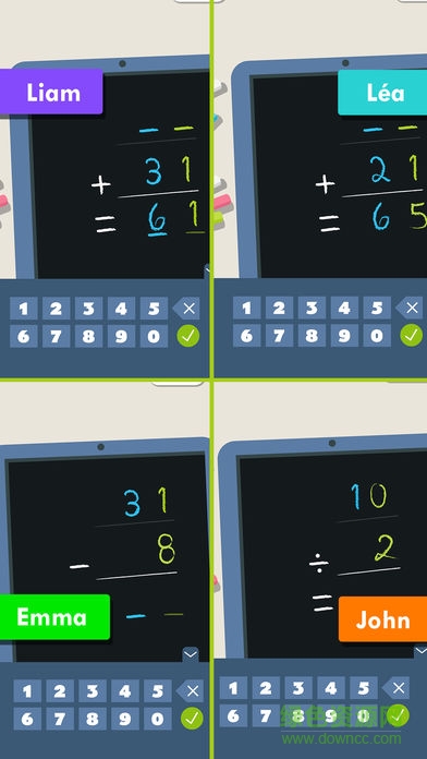 提供所有4种运算,但免费版本中仅包括加法运算。解锁完整的游戏,回答减法、乘法和除法算式!