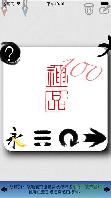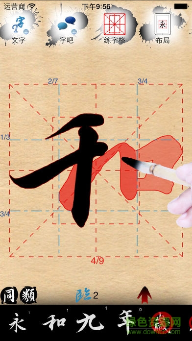 1.点击书法字体可进行临帖;