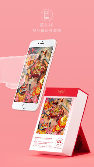 除了封面,2018《传家日历》内页共有三十四个重点页面植入AR体验,通过APP的“玩转AR”窗口扫描(长按对焦)标有“AR”标志的日历页面,即可体验动态、音效、字幕、触屏等多维互动的增强现实效果。