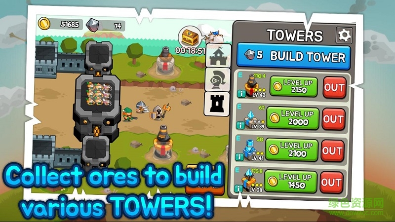 塔可以成长,每一层都可以放置英雄。随着金钱的增加可以购买更多的英雄和装备武器,塔楼的弓箭手会不断升级并且越来越强大。