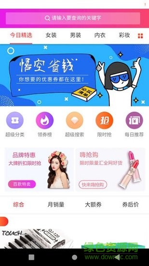 悟空省钱app是专为喜欢购物的朋友提供的一款省钱神器,在这里购物前都可以先领券,参与活动还能享受折上折的优惠,而且商品都由厂家直接发货,有任何不满意都能退换,新用户下载使用还有特殊福利赠送哦,喜欢的朋友可不要错过了,欢迎来绿色资源网体验。