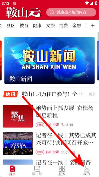 1、打开鞍山云首页,点击底部导航栏的我的,进入个人功能操作页面。