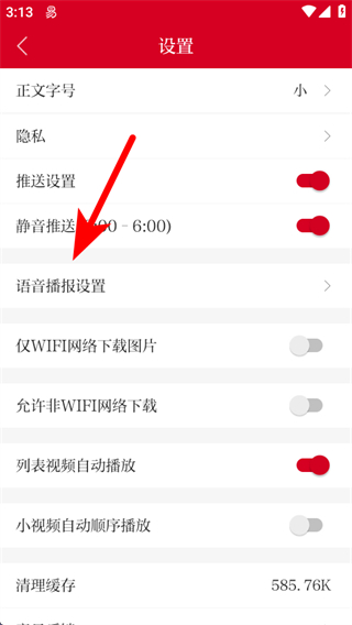 3、在设置功能界面中,找到语音播报设置入口,点击进入语音播报设置页面。