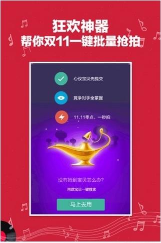 手机淘宝秒杀神器安卓版真的是一款购物秒杀神器了,小伙伴们,今天就是双11了,大家都在疯狂购物,你还在等什么?新版优化的产品功能,购物浏览更便捷,支付体验更顺畅。
