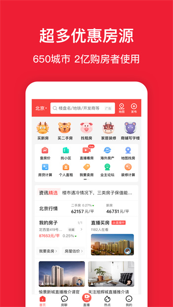 2、二手房:海量真房源,可使用积分快速预约、联系业主看房