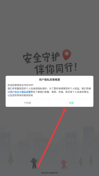 1、点击屏幕中的同意按钮,开始进入使用安全守护2。
