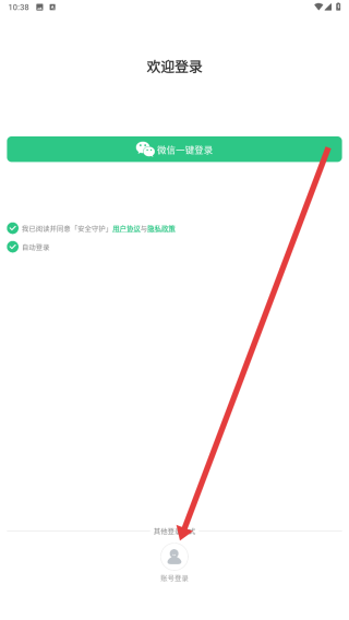 2、在用户登录页面中,可以点击账号登录按钮切换登录方式。
