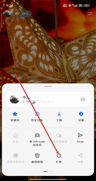 1、打开Edge浏览器,点击界面右下角的菜单按钮,展开功能操作面板。