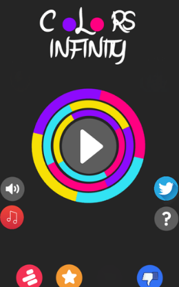 Switch Color 2 翻译成中文是「色彩无限」,而在游戏的过程中,你会发现,这款游戏可真的是不辜负如此华丽的题目啊!进入游戏,犹如进入了一个全新的色彩世界,因为每一个区域都十分的有「颜色」,每一处都深藏不露,当然!如果这是你是第一次玩这款游戏,相信你一定会发现,这款游戏并不需要过多任何教程,而只是单单的通过首页来回环绕的五彩圆圈和下面的四个按钮就可以看出这款游戏的基本玩法!可见这游戏不简单啊!