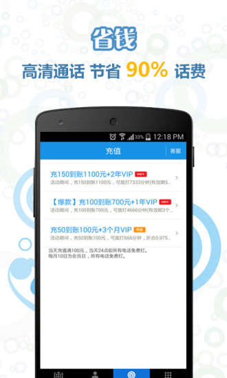 陌聊免费电话,本年度最值得信赖的智能省钱工具。注册最高送60分钟话费,VIP尊享每天夜间、会员日全天免费打电话!通话流畅,音质清晰,去电显号/隐藏号码随心所欲,会员日、夜间电话无限制免费打。