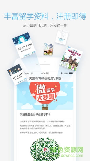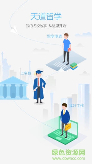 天道留学app是专门为即将出国留学的学生打造的一款留学服务平台,这里拥有留学资讯、留学指南、留学申请等特色服务,有需要的朋友欢迎来绿色资源网下载体验!